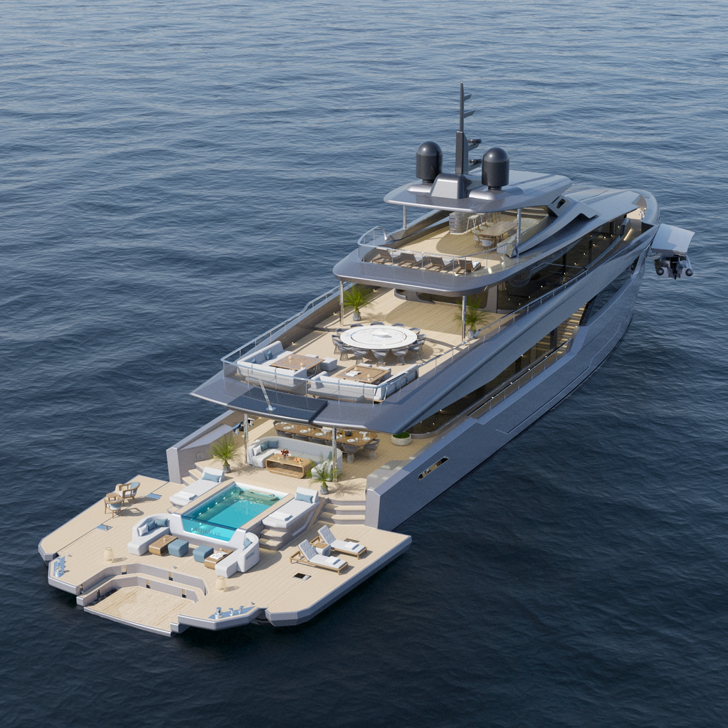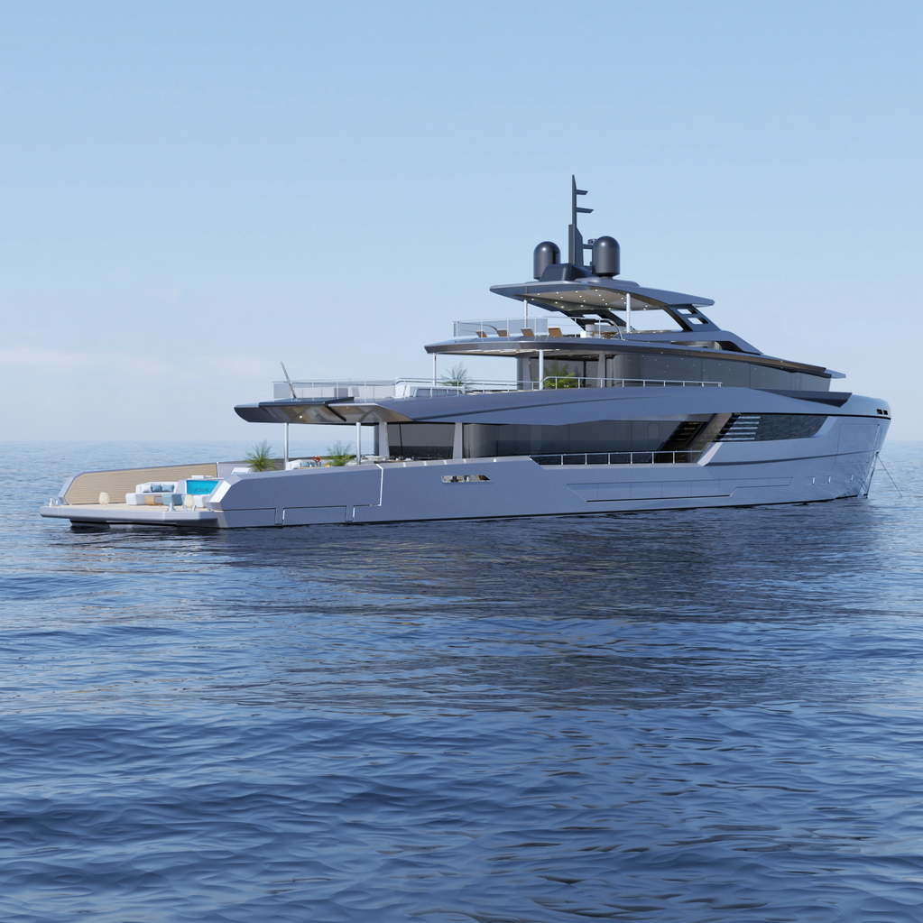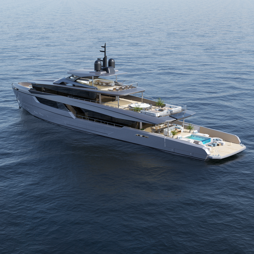 Conceived with a steel hull and aluminium superstructure, this project is designed to embody a bold presence and sharp lines, positioning itself as a striking representative of modern superyacht design.