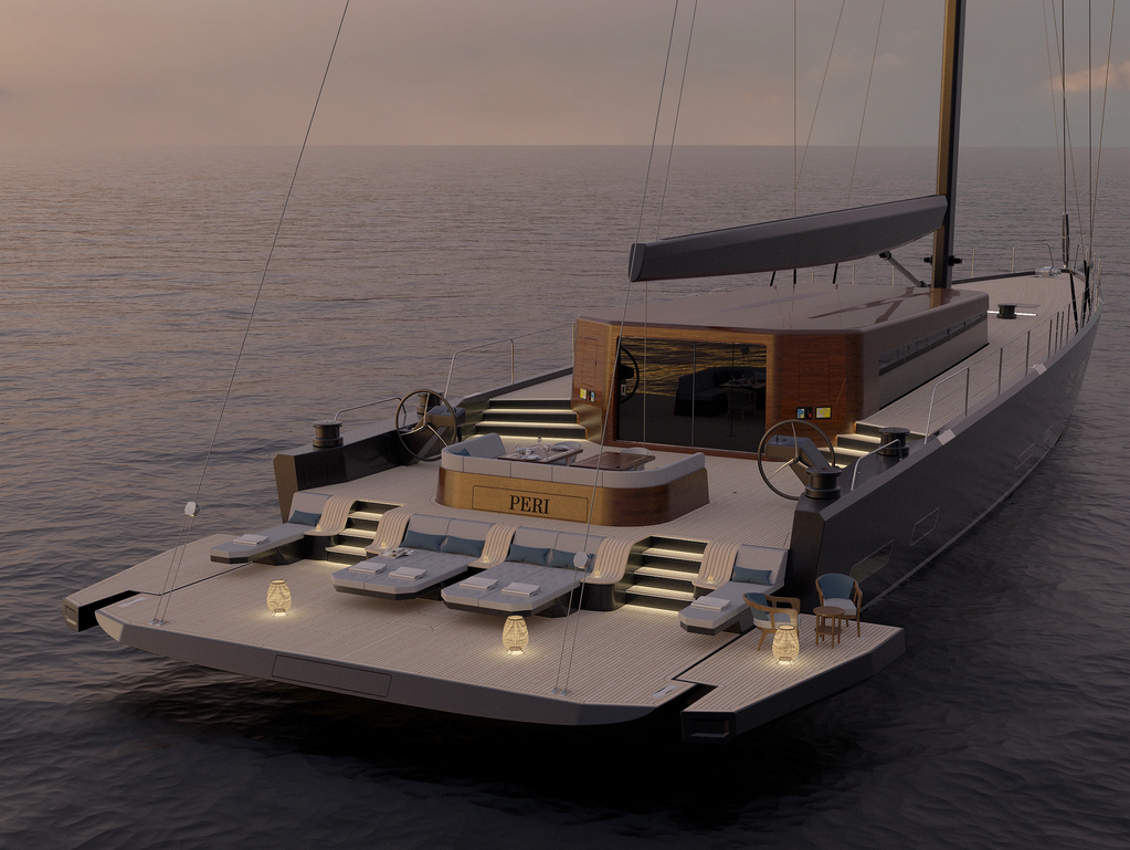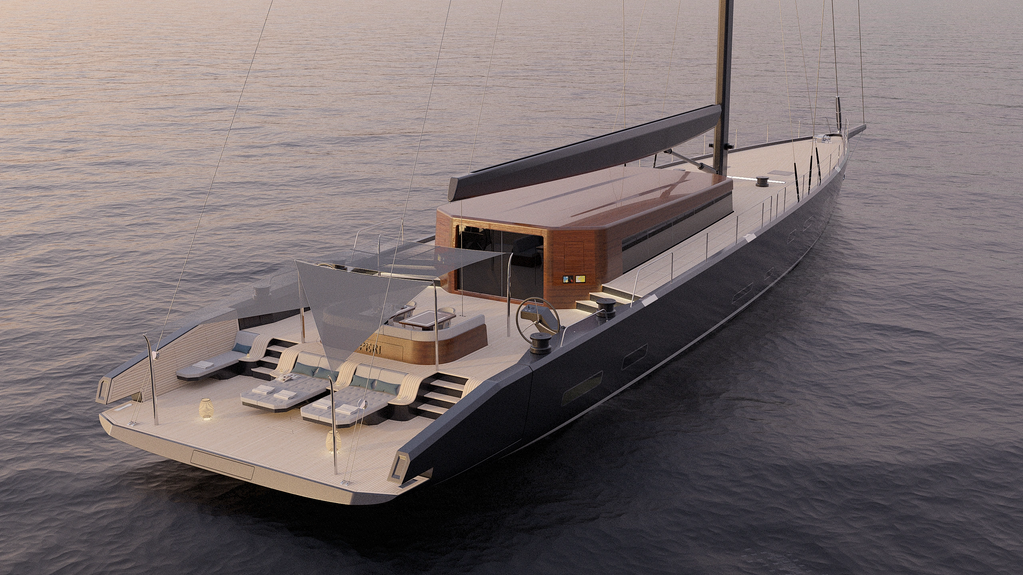 This single-mast sailing yacht features 5 cabins, a steam room, and a spacious aft deck.